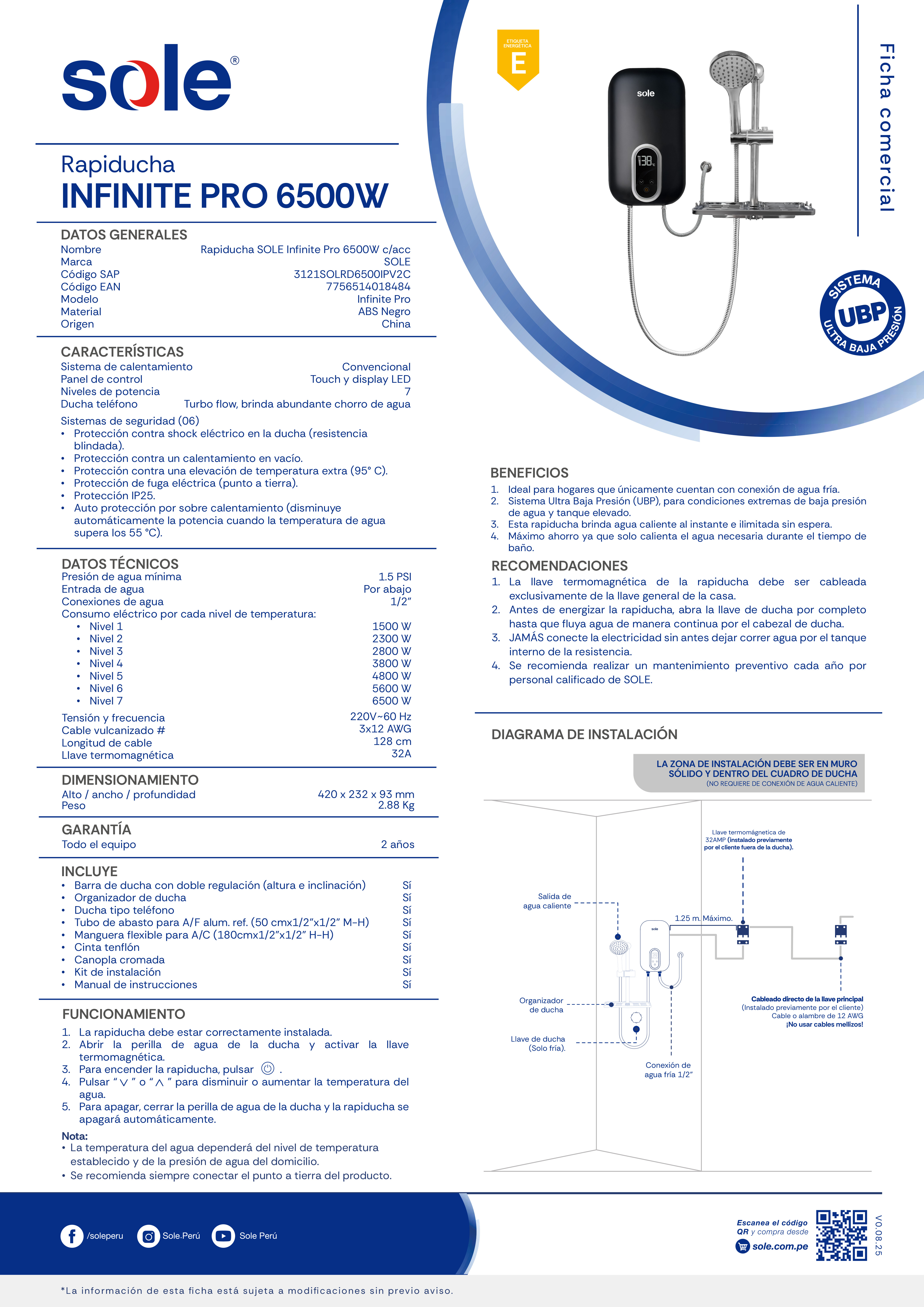 Todas las rapiduchas en el mercado necesitan presión de agua para funcionar, pero las rapiduchas Sole cuentan con un sistema especial y único que trabaja con UBP - Ultra Baja Presión - de agua para aquellas viviendas que no cuenten con buena presión o tengan tanque elevado.